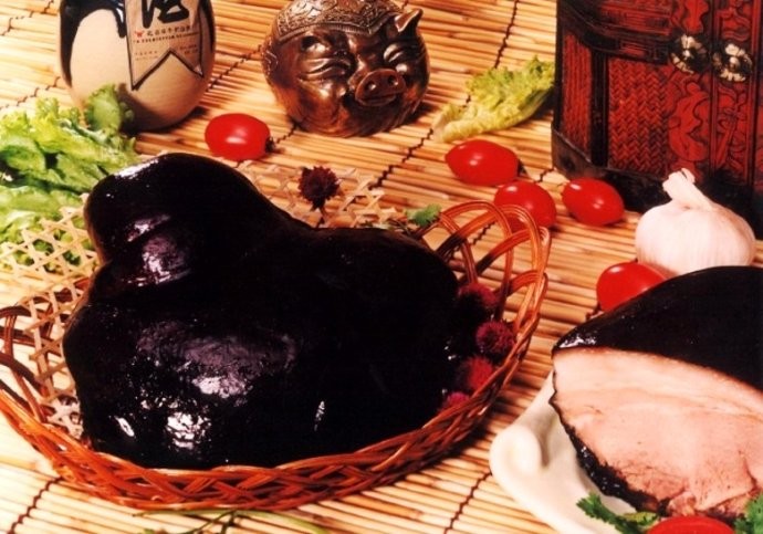 早年天福号做酱肘子选原料,只认京东八县的黑毛猪,而且只用前肘。这种猪肉瓷实、皮薄肉嫩,营养特别丰富。如今京东八县的猪找不到了,为了寻找符合做酱肘子的猪源,天福号派人跑了全国几十个省市,对肉源进行考察、筛选,最后确定四川内江、广元地区和北京顺义区为原料地。