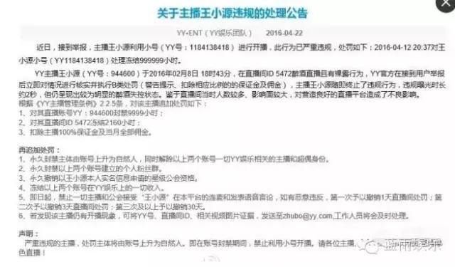 YY网红八卦丨王小源个人遭到封禁114年,从此告别YY平台