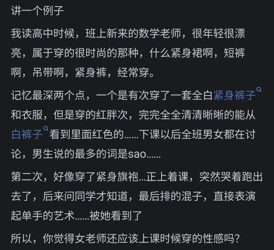 女老师穿性感低胸装合适吗?网友:你是在引导学生犯罪