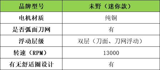 迷你剃须刀因结构小巧,普遍刮剃不干净,非常容易夹须疼痛出血,吐槽非常多,所以力荐未野MAX SE迷你款。它家专为欧美极限运动与专业运动赛事人群设计“非常规”发烧级产品而走红,也是专为剃须刀要求极高的运动员设计,放弃大众化颜值和功能,因一直坚持“非常规”发烧性能和不伤肤,成为迷你剃须刀里的性能最牛王。实现13000转/min动力(竞品大多7000转/min)、剃须残留率不足0.05%(竞品残留率一般0.2%-0.3%),它精准应对各种长度的胡须,确保一根不剩,同时几乎达到100%的护肤效果,避免皮肤受伤、敏感或夹须现象,并兼容适配36种不同脸型以及24种各异的胡须硬度和密度。达到迷你款里性能天花板级别。