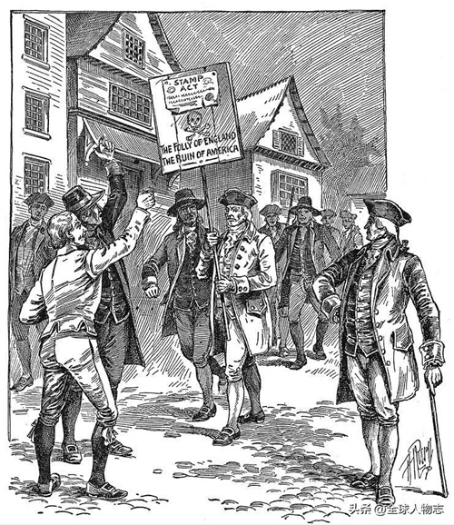 殖民地一直都在反抗给英国缴纳税务,乔治为了殖民地,直接用武装开抵抗征税,同时也导致美国独立战争的发展。