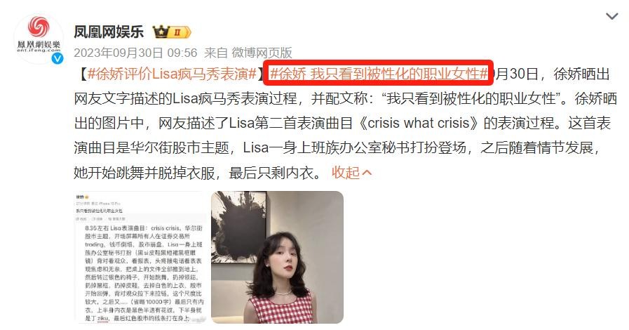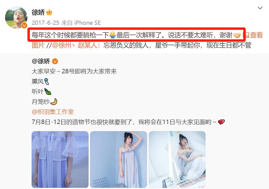 对此,徐娇直接曝光对方照片,并且发文讽刺。