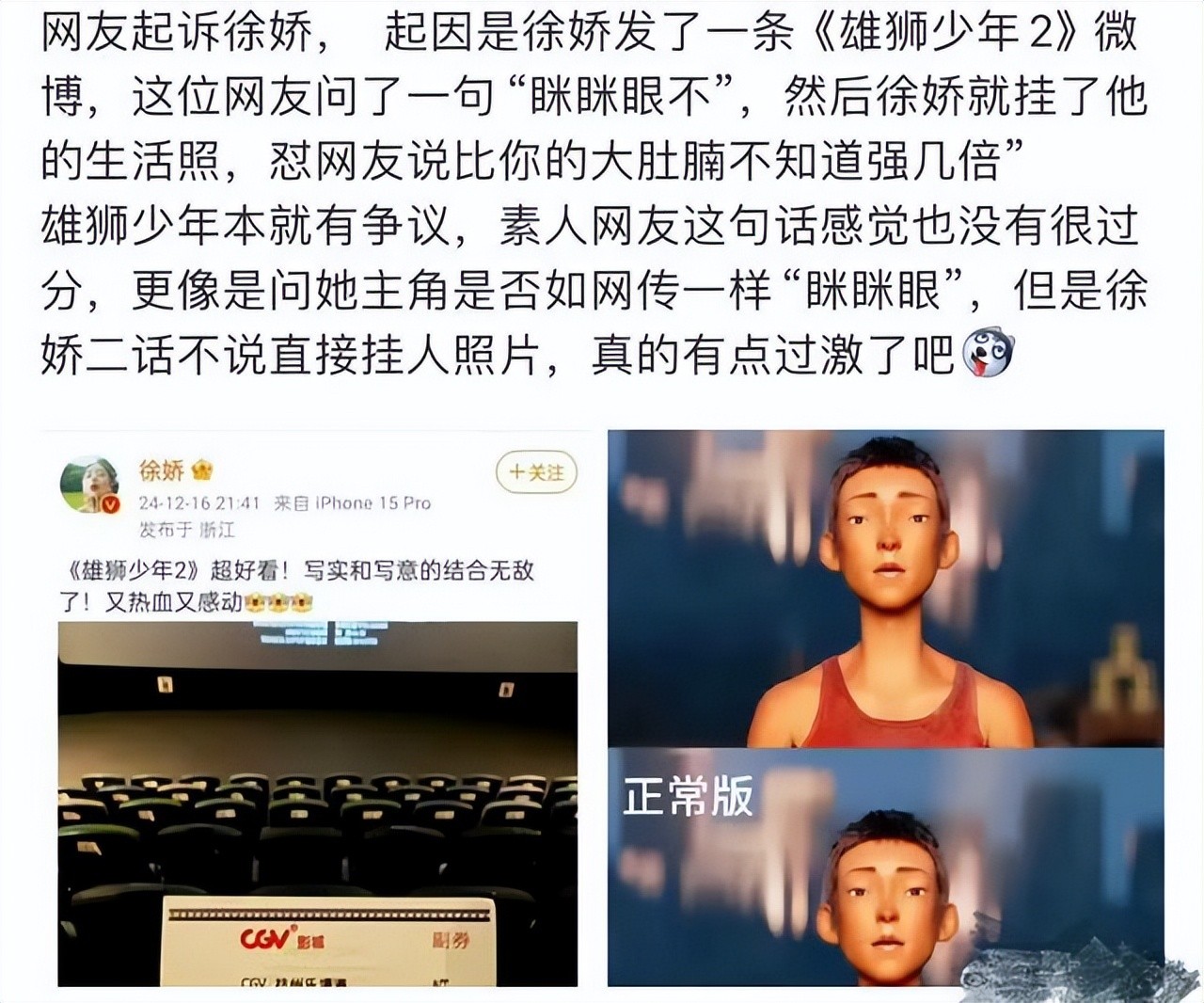 同样是2024年12月,徐娇发文称赞《雄狮少年2》。