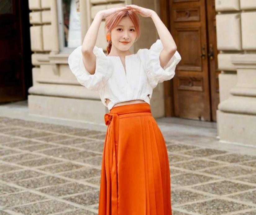 徐娇则在毕业典礼上,粉发搭配马面裙。
