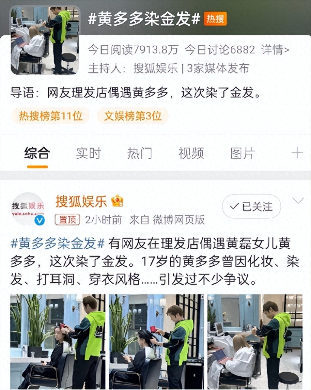 3月27日,“黄多多染金发”再次登上热搜榜首。