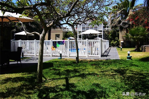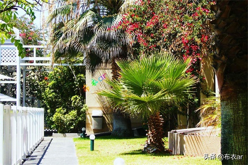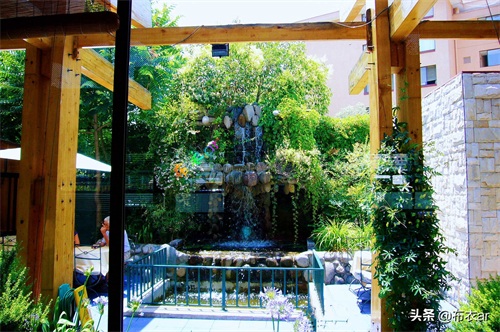 智利首都圣地亚哥,所住旅馆庭院一角。