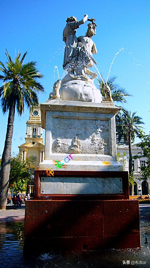 智利首都圣地亚哥街心花园内的雕像。