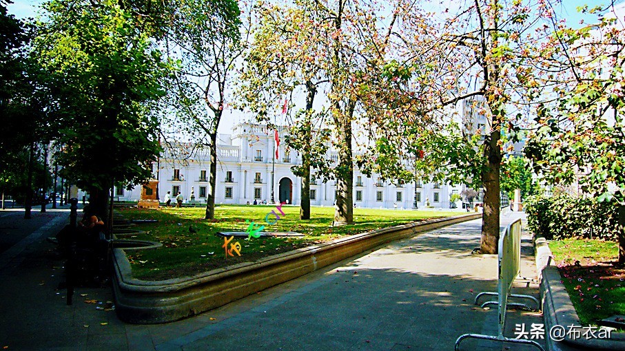 智利首都圣地亚哥,所住旅馆附近的街心花园。