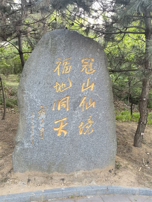 春风徐徐送仙气,冠山自古福洞天。1942年我党重要领导人刘少奇同志来临沭工作期间曾登临冠山,亲笔题写了“冠山仙境,福地洞天”之名句,至今在仙人洞上洞洞口左上角岩壁上还历历在目。