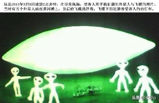 2013年来自山东滨州的李凯,在网上发布了一则消息,声称自己一天夜晚在黄河滩上遇到了外星人,一共是5个,对方想把他带走,他拼命挣扎逃跑了,也顾不上自行车了以百米冲刺的速度跑到了仓库