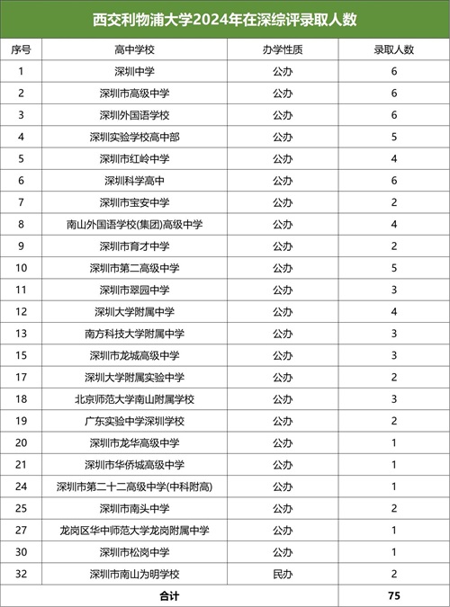 2024年西交利物浦大学在广东综评招生共120人,其中,在深圳录取了75人: