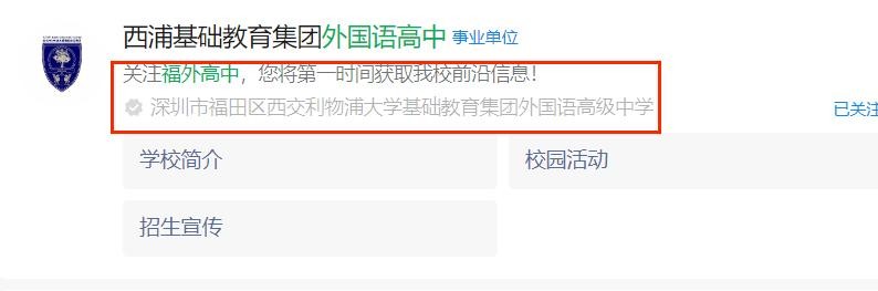 重磅!据学校官方微信公众号显示:深圳市福田区外国语高级中学正式更名!