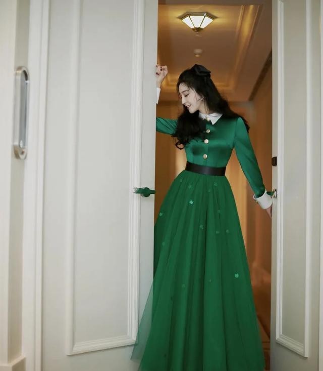 范冰冰穿复古风墨绿长裙,一丝不漏仍大气惊艳,生图也是够绝。