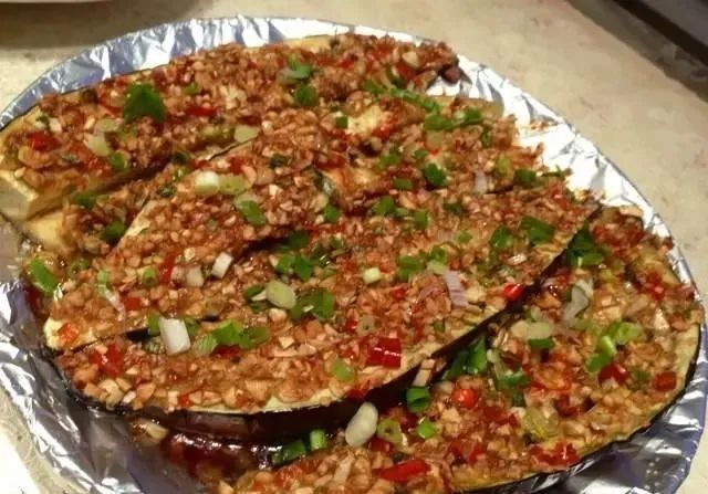 茄子、辣椒粉 / 花椒粉 / 孜然粉 / 酱油 / 蒜末 / 葱花 / 小米椒