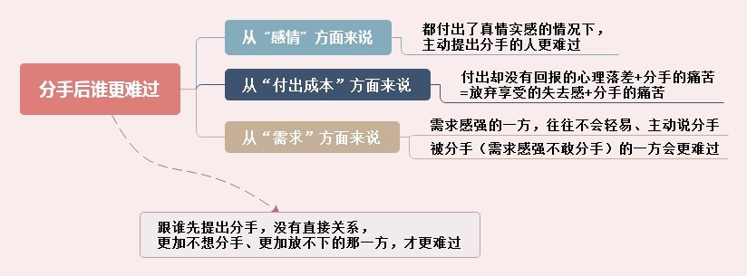 不过,结合我这三个方面的理性分析和很多人自身"感性"的想法,我们其实不难看出。分手后谁更难过这一点,其实跟"谁先提出的分手"没有什么直接关系。