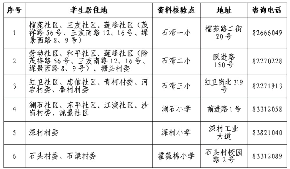 一年级户籍生石湾镇街道现场资料核验点
