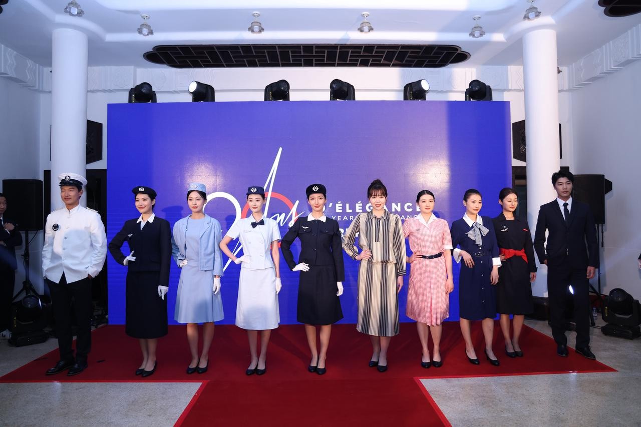 现场时装秀展示了10套由国际知名时尚设计师设计的法航复古制服:
