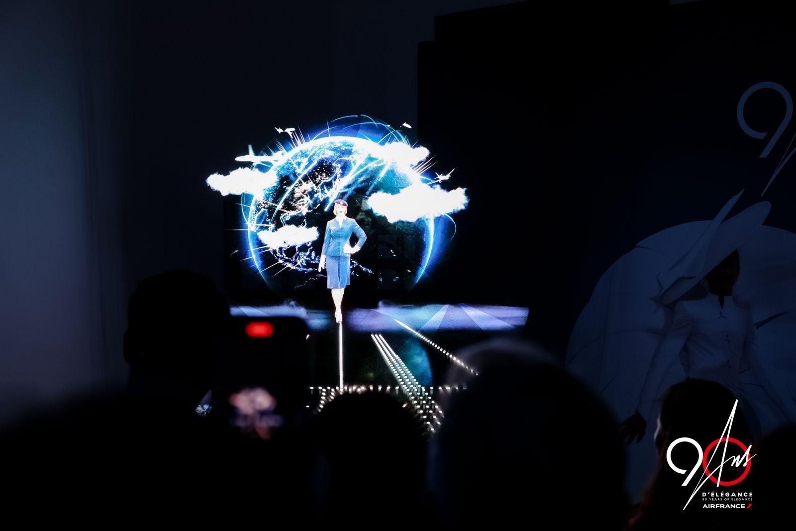 在全息投影时装秀中,我们同样重现了法航的传奇制服历史:模特身着飞行员、空乘、地勤和机械师制服,从昨日走向今天,打破虚实界限。