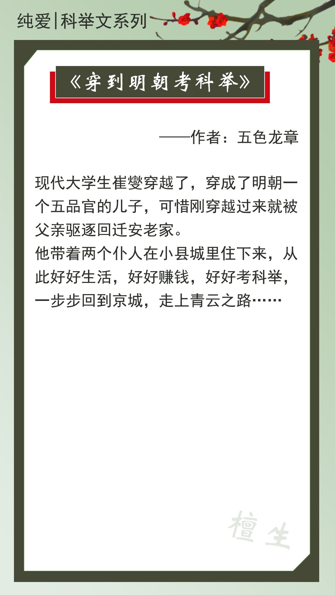 第二本:《穿到明朝考科举》作者:五色龙章