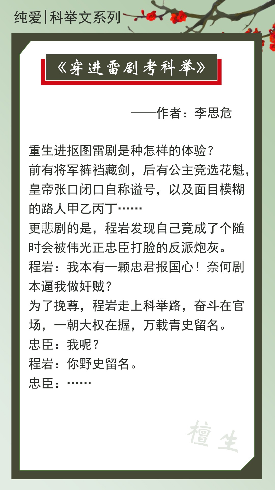 第五本:《穿进雷剧考科举》作者:李思危