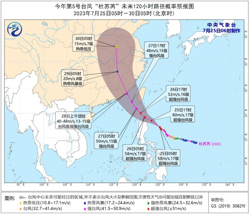 台风“杜苏芮”今天5时中心距离台湾省鹅銮鼻东南方向约670公里(北纬17.2度、东经124.9度),中心附近最大风力17级(58米/秒,超强台风级)。