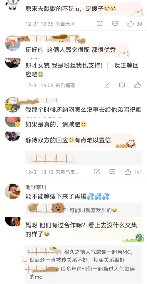 如今在回首过往的种种,对粉丝来说有种豁然开朗的感觉,终于明白为什么弟弟结婚,IU会现身唱歌,为什么李钟硕会唱IU的歌了,也有网友希望“幸福肥”的李钟硕可以多减减肥。整体来看,大家对于这对新恋情还是祝福为主,恭喜啦!