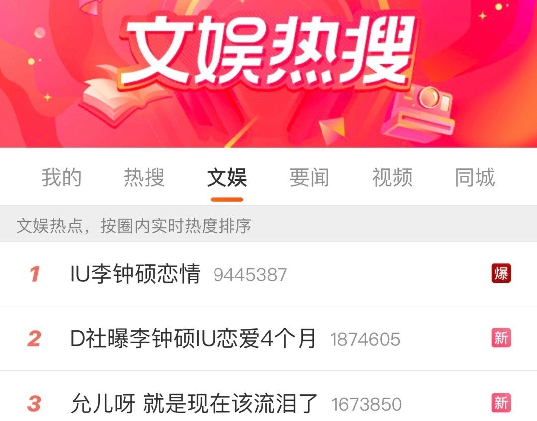 李钟硕和IU堪称是双顶流相恋,强强联合,不仅在韩国,在中国微博也引爆热搜,引来极高的关注度。
