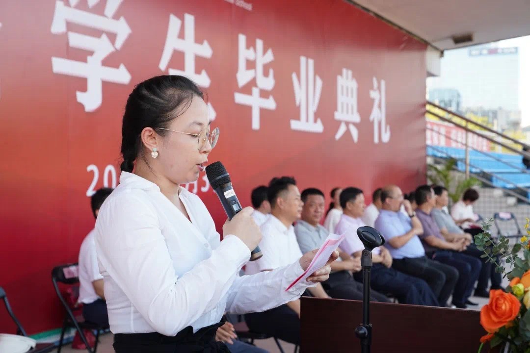 计算机部林玉如老师作为教师代表发言,向同学们致以最热烈的祝贺和最美好的祝愿。她表示,同学们的前途广阔,大有可为,并激励同学们永葆赤子之心,坚守梦想,用知识、技能和勇气去面对未来生活工作的困难。