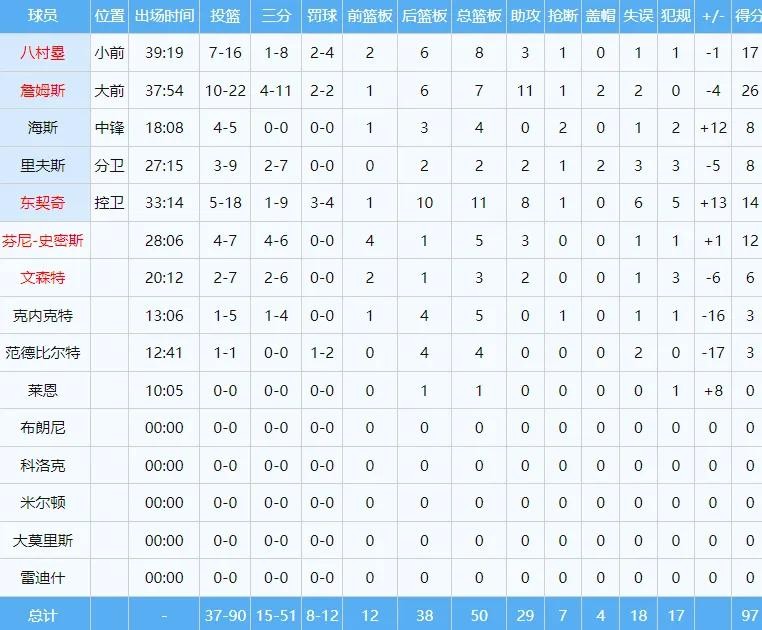 此役詹姆斯稳定发挥,26分7板11助,但东契奇还是未能找回最佳状态,投篮18中5才得到14分11板8助更是出现了6次失误。