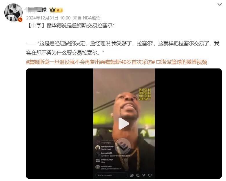 再说了,此前湖人完成把拉塞尔送到篮网的交易之后,霍华德可是在直播公开怒喷是詹姆斯“詹经理”操控了一切,光是这点就足以让他与湖人的缘分已尽。