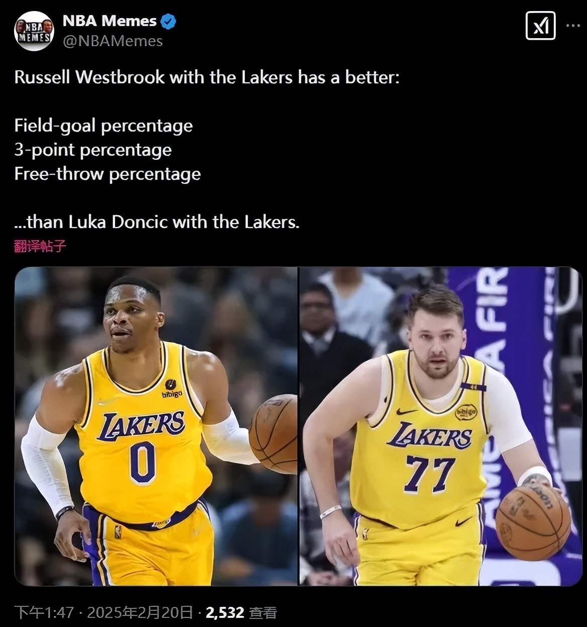 加盟湖人以来,东契奇场均14.7分6.7板5.3助,三项命中率36%、21%和58%,3场合计出现12次失误,尽管样本不足但现在已经有不少人担心他是下一个威少......