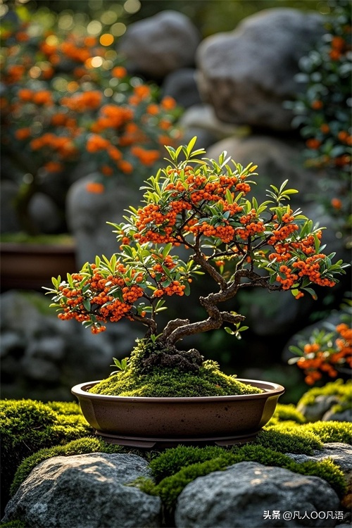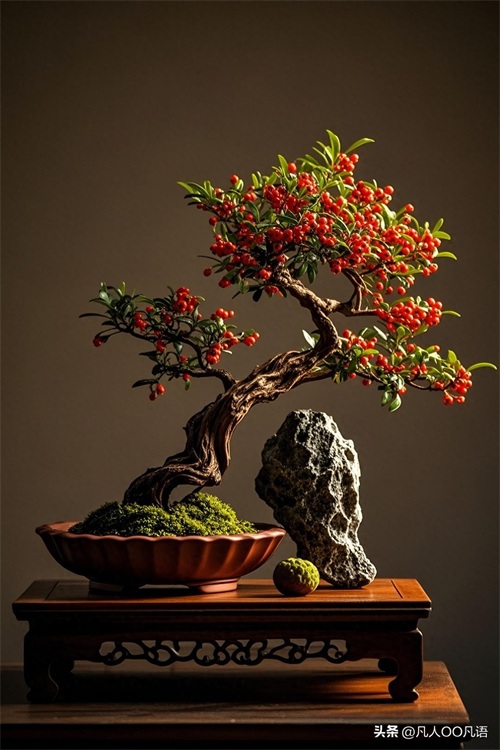 火棘盆景不仅具有观赏价值,还能给人带来心灵的宁静和愉悦。将其摆放在家中或庭院中,无疑是一道亮丽的风景线,让人陶醉其中。