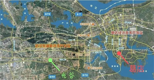 最近,看头条的时候,看到这样一幅图,当时很惊讶,葛店与光谷的联系居然这么近,几乎快连成一片了。虽然目前的行政状态是光谷属于武汉,而葛店属于鄂州,但是有这样的区位联系,葛店想不发展都难。