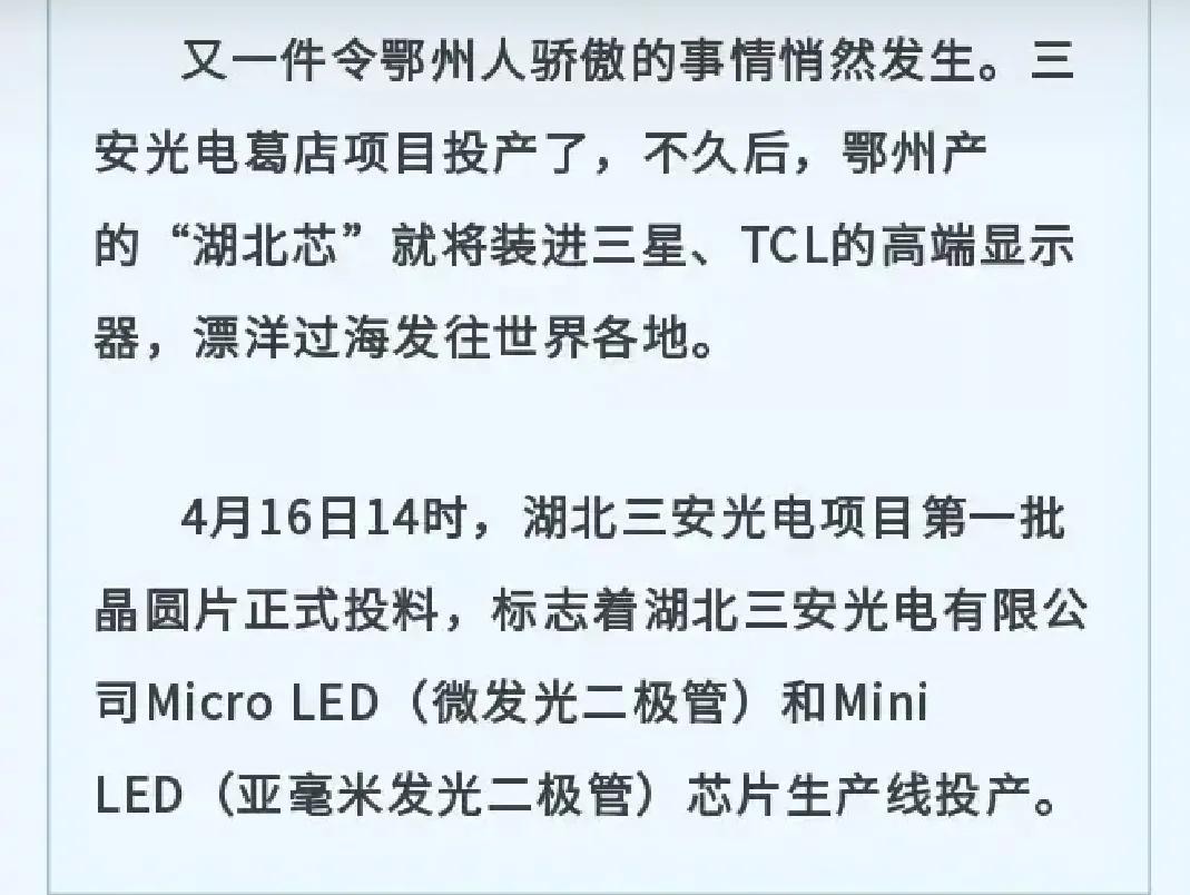 投资120亿的三安光电项目,正在加速建设中,第一批项目已经投产。一大批新型产业落户葛店,为葛店提供了良好的就业机会。