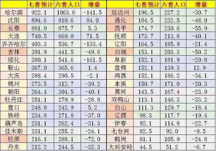 最新数据,东北三省人口流出了1000多万,其中光黑龙江就流出了600多万,吉林也有300多万。有一疑似的各城市的数据。