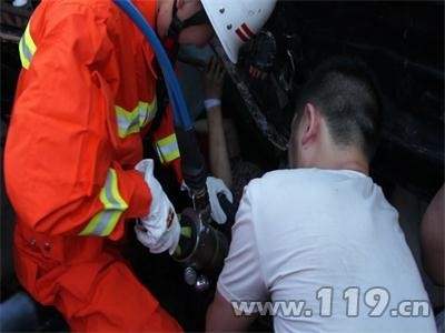 面包车翻河沟命悬一线 贵州习水消防成功营救