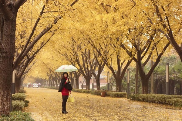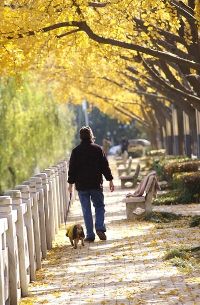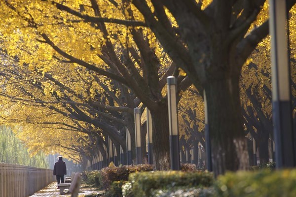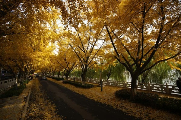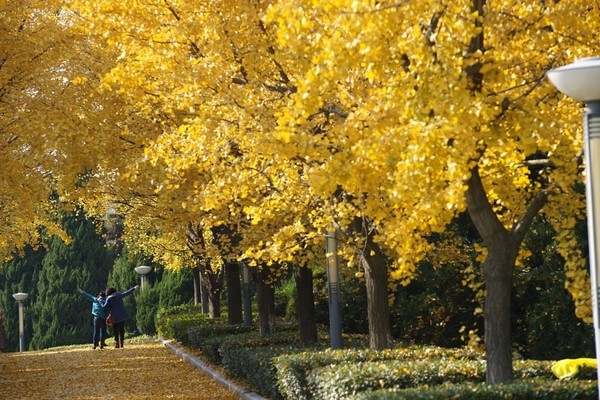 2013年11月摄于国家级水利风景区——江苏省扬州市江都水利枢纽内的银杏大道,该大道南北贯通 ,长达数百米,树龄半百。每到金秋时节,这里就成了名副其实的黄金大道。