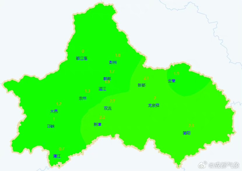 据成都市气象台,7时全市气温0.0℃(都江堰)~2.7℃(双流),天气寒冷,你那儿飘雪了吗?