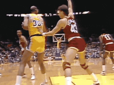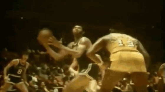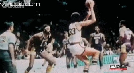 贾巴尔的天勾神技,再加上他个人2.18m的身高,据说整个职业生涯该投篮姿势只被封盖了5次!
