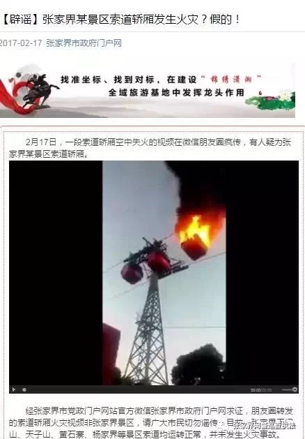 网称张家界某景区索道桥厢发生火灾事故系谣言