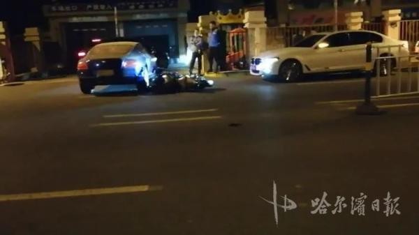 据宾利车代驾小哥介绍,事故发生在23时许。当时他帮宾利女车主代驾回家,行至铁顺街恒祥城附近,正常左转进入地下车库。突然一辆摩托车疾驰而至,摩托车男骑手发现有车转弯,想刹车躲避,可因车速太快,车辆失控倒地滑行冲过来,轮胎摩擦地面冒出白烟。随后就听“咣”一声响,撞上了宾利车,宾利车内双气囊弹了出来,女车主受了惊吓。