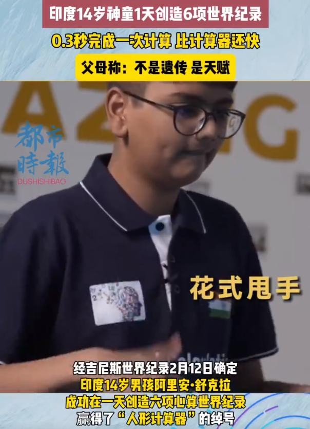 印度14岁神童一天创6项世界纪录,心算比敲计算器速度还要快
