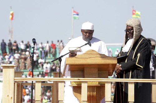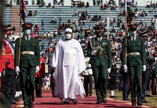 1月19日,冈比亚连任总统阿达马·巴罗在首都班珠尔出席就职仪式。 新华社/法新
