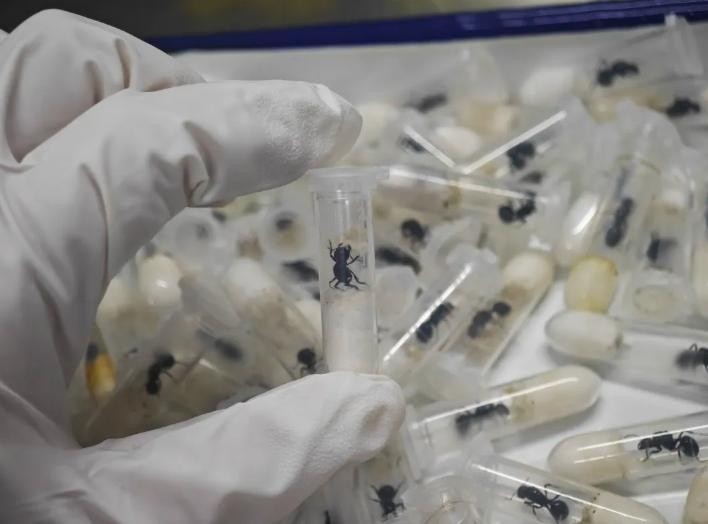 经实验室鉴定,该批蚂蚁为野蛮收获蚁,属于外来物种。目前,海关已暂扣该邮件。