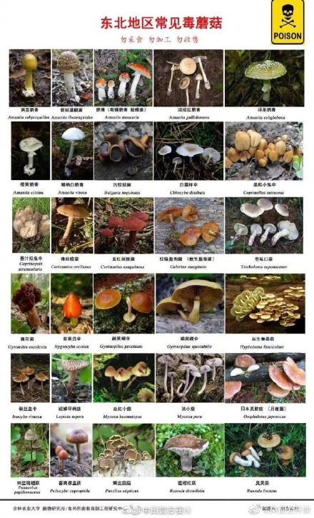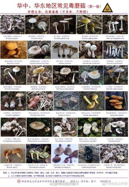 近日,广东6人尝鲜白色野蘑菇中毒。野蘑菇种类繁多,有些毒蘑菇毒性极大,误食后容易导致死亡。戳图,看我国各地区常见毒蘑菇图谱再次提醒:不采不买不食野生菌类,谨防中毒!(图/@人民日报)