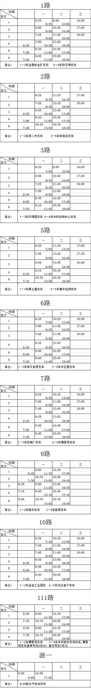 公交线路发车班次及时间调整公告