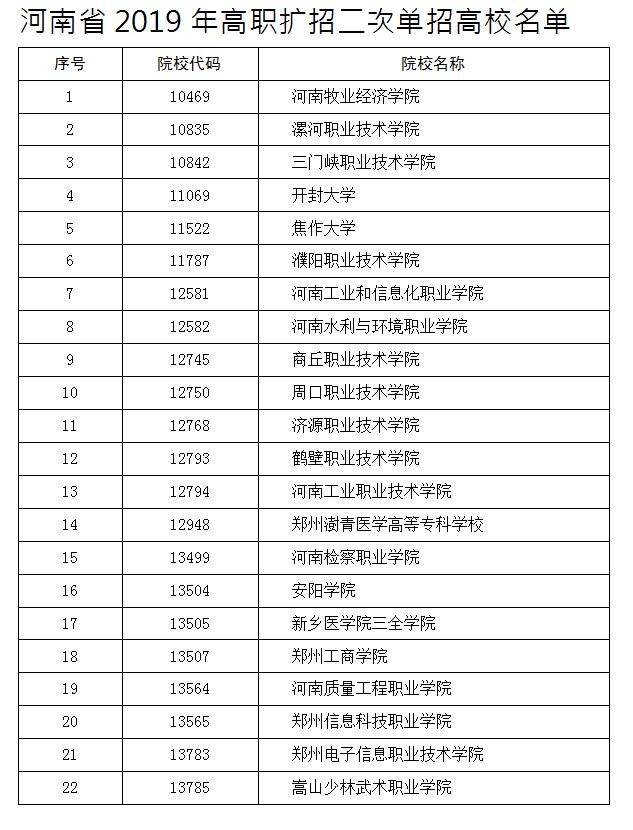 河南省2019年填报志愿时间为2019年11月13日9:00至11月14日18:00,高职扩招二次单招考试时间为2019年11月23日(星期六),河南单招最好的学校有:河南职业技术学院、漯河职业技术学院、郑州铁路职业技术学院等。