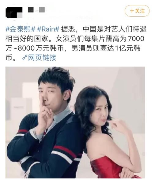 rain是韩国知名男星,因一部《浪漫满屋》而被国内观众熟知。近年来参与过多部影视剧的拍摄,片酬每集高达一亿韩元,曾经引发过天价片酬的争议。