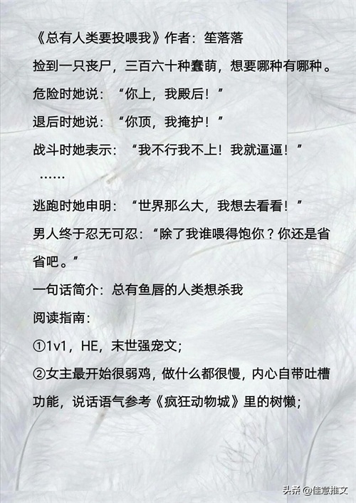 今天给大家推荐的是末世文,以前看《生化危机》的时候就觉得很刺激,末世来了,一切秩序都不用遵守了,连书都不用读了,看小说的时候才发现要是末世真的来了,我就是第一批被咬的,不过看这种升级打怪的小说是真的爽。