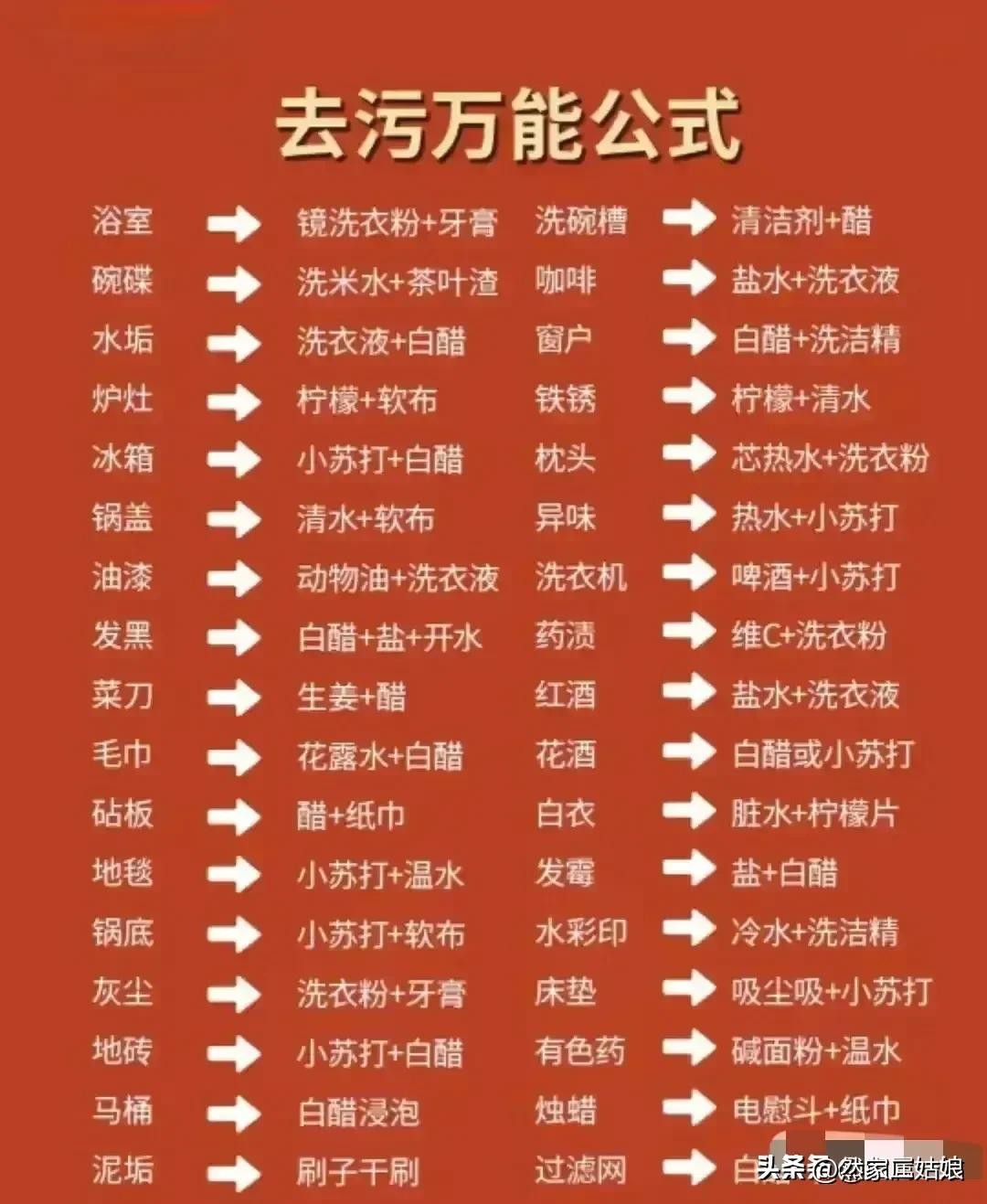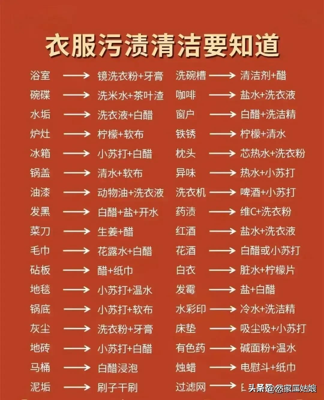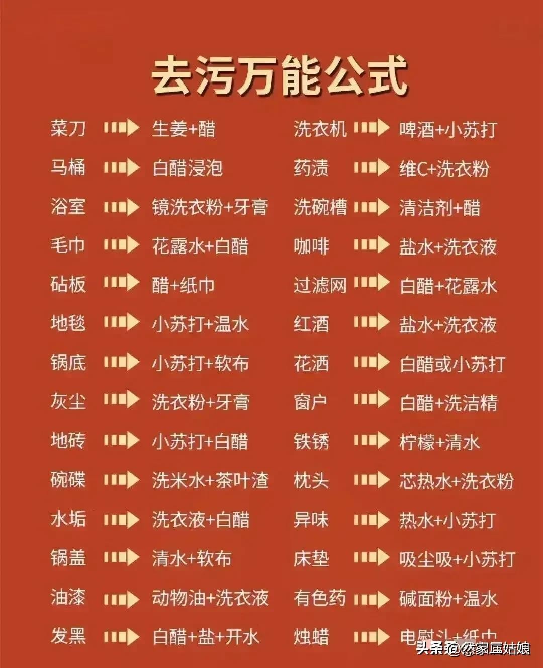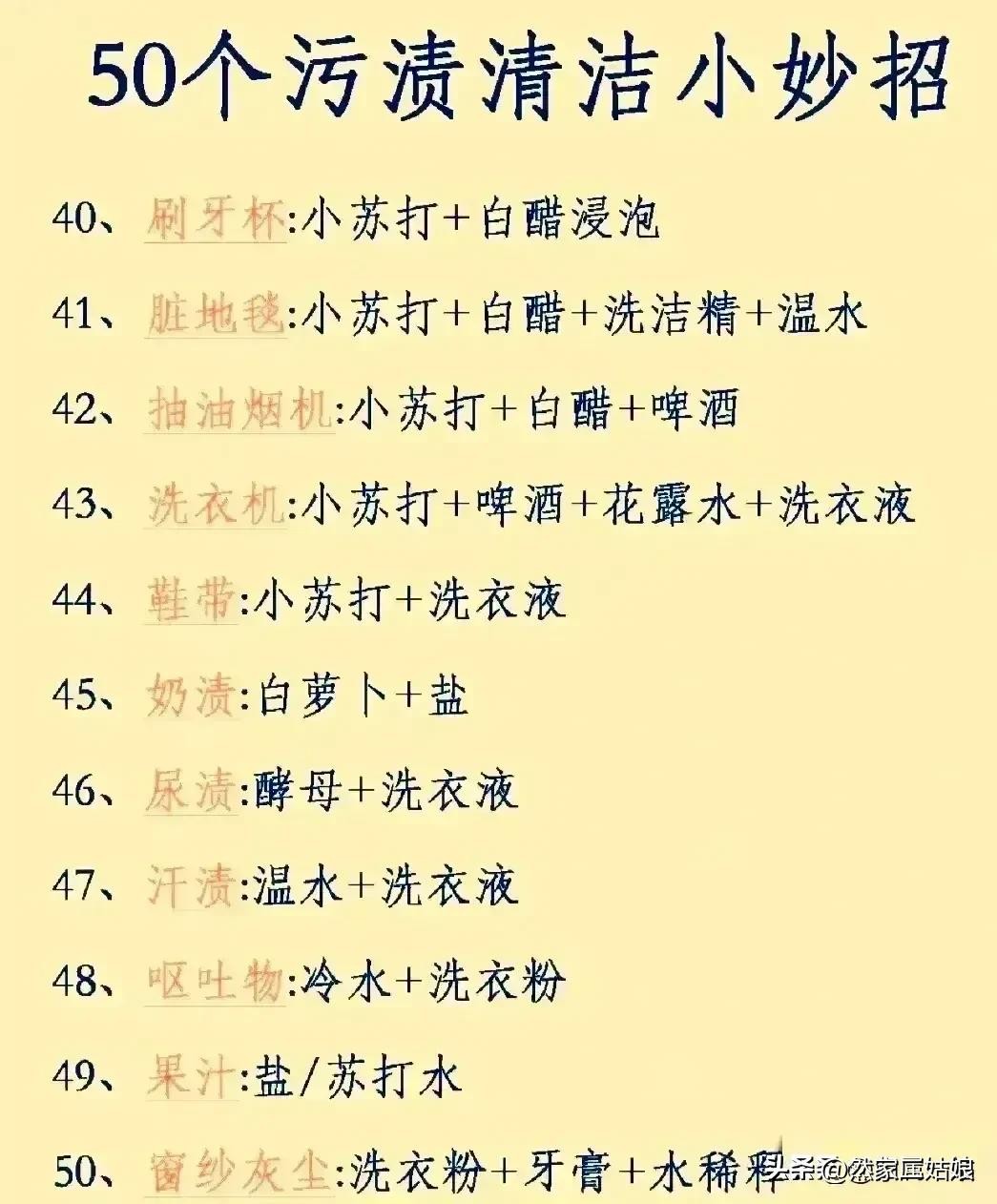 50个污渍清洁小妙招,去污万能公式